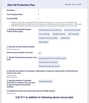 1Worker fills out a hazard assessment and if they answer yes to wearing a harness the inspection form pops up for completing, or via QR code.