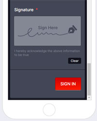 2 The worker enters their contact info, confirms which site they are on, digitally signs and the time is automatically logged.